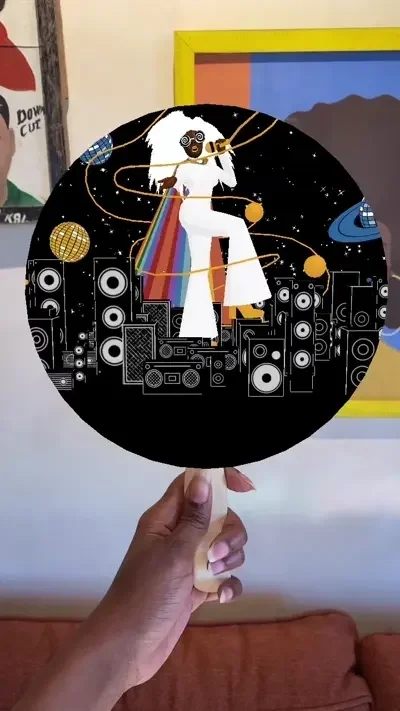 We developed a hybrid activation for the Obsidipolis room by Janell Langford inside Meow Wolf’s House of Eternal Return, connecting a physical RFID object with a digital AR experience. Visitors received a custom church fan embedded with an RFID chip that unlocked interactions and content specific to the Obsidipolis environment.